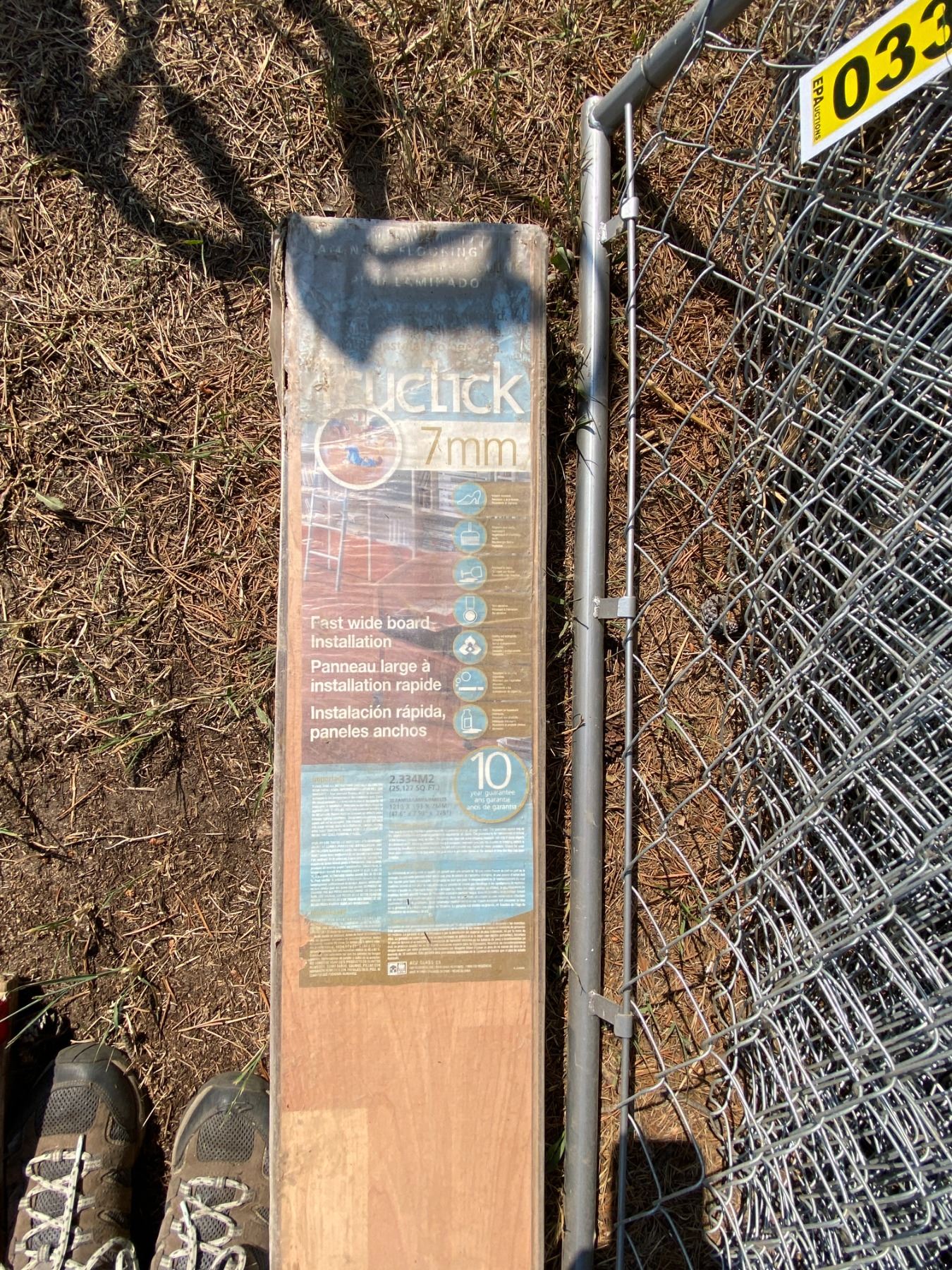 KA Chain Link Gate and rolls of chain link approx 4ft & 1 box of hardwood flooring