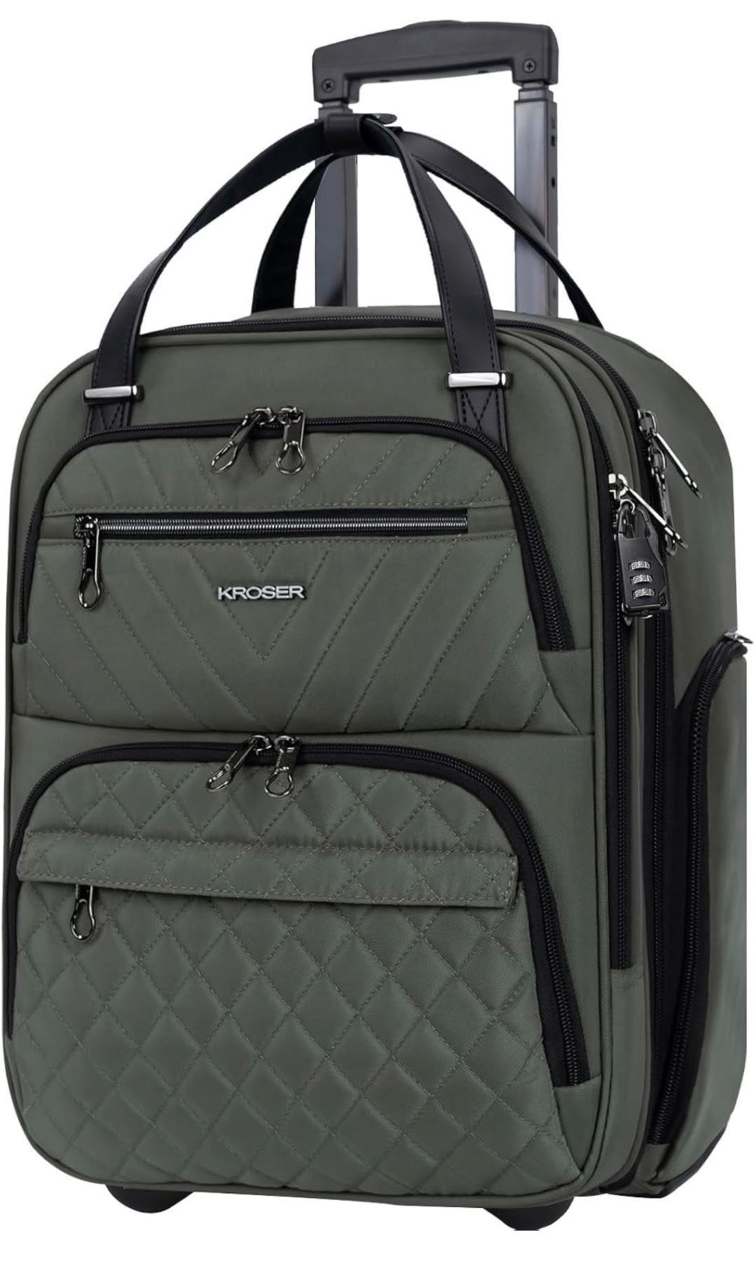 - kroser carry on underseat multi-functional, 16-inch underseater lightweight overnight suitcase for women, army green, 16“