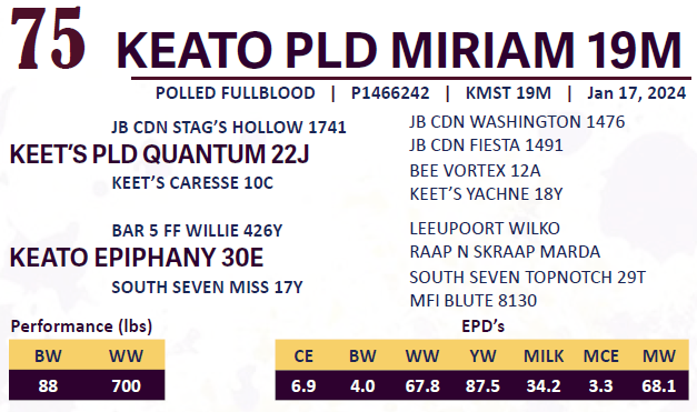 KEATO PLD MIRIAM 19M - POLLED 100% FLECKVIEH - Exposed to HANSOLO 56H (Reg 1363638) from March 22 – May 24th 2025 Observed bred April 10th 2025
