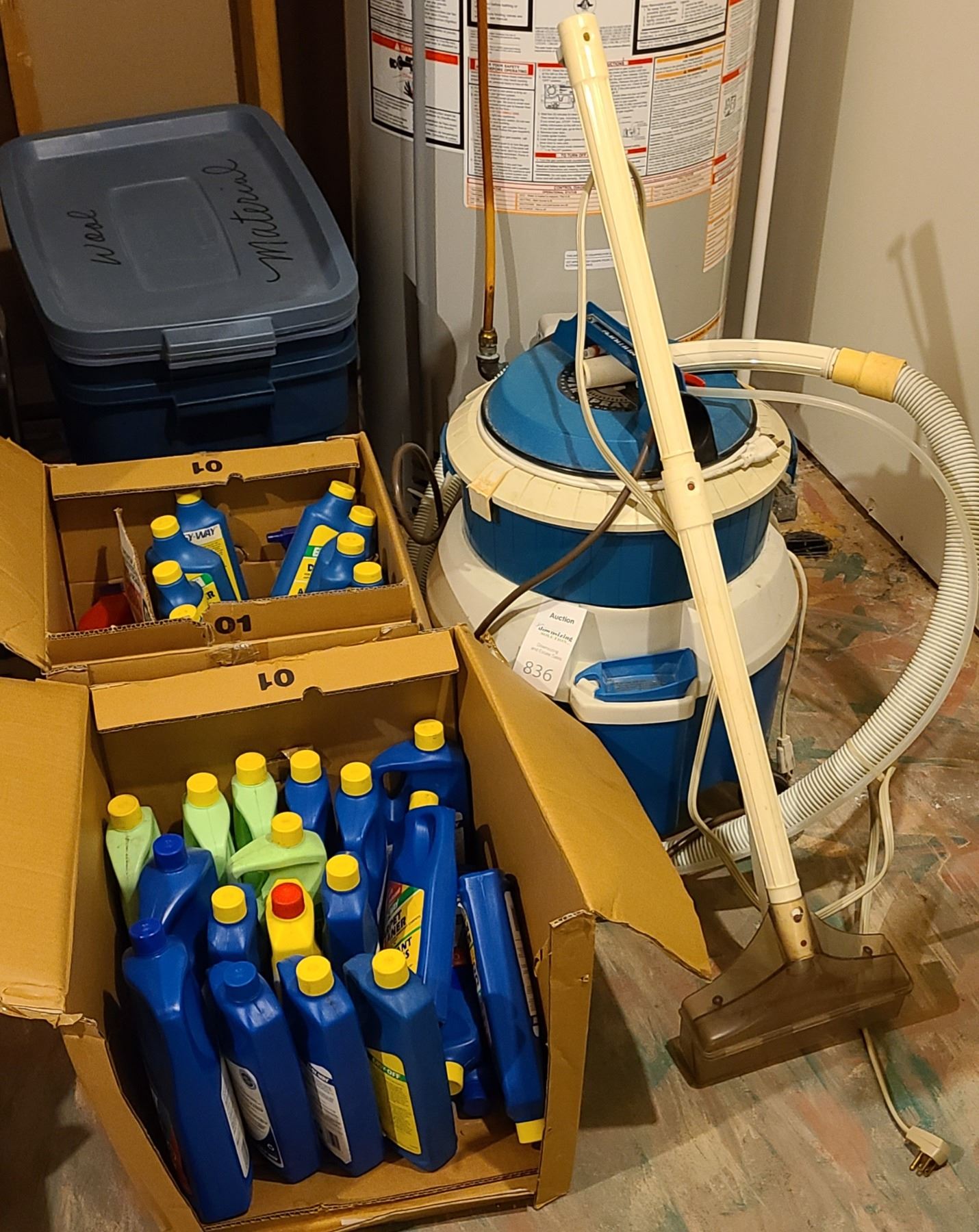 Carpet cleaner and 2 boxes of cleaning chemicals. Pickup at 10 am