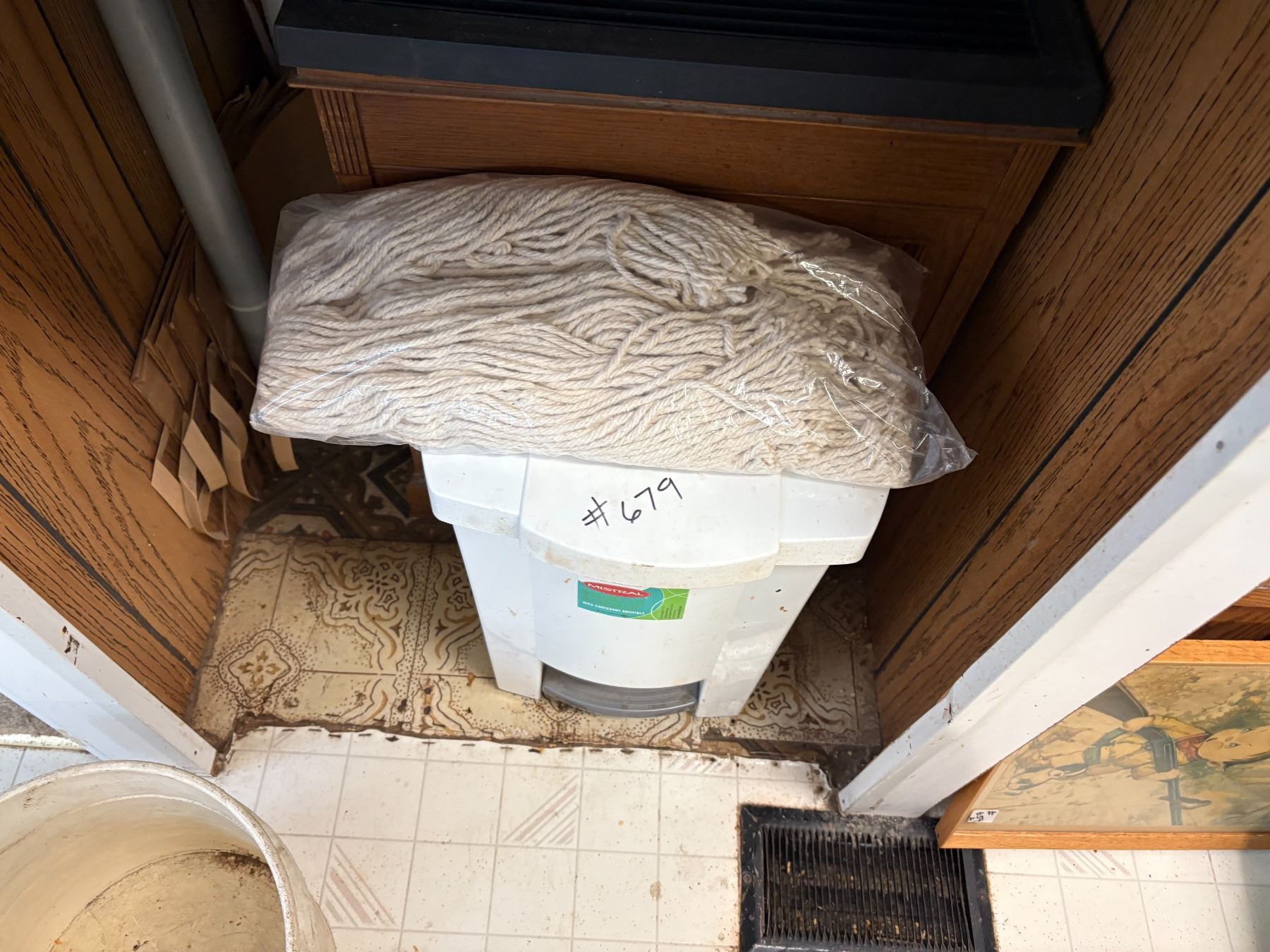 Kenmore microwave, garbage bin & mop head