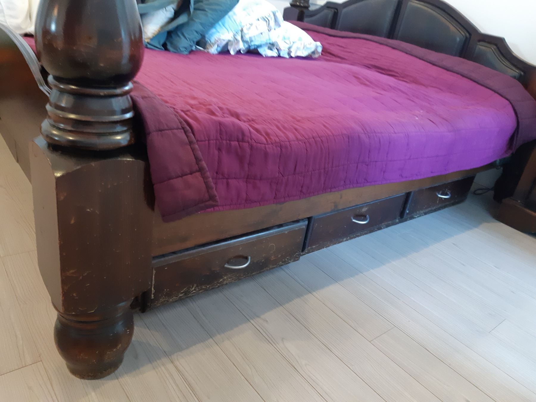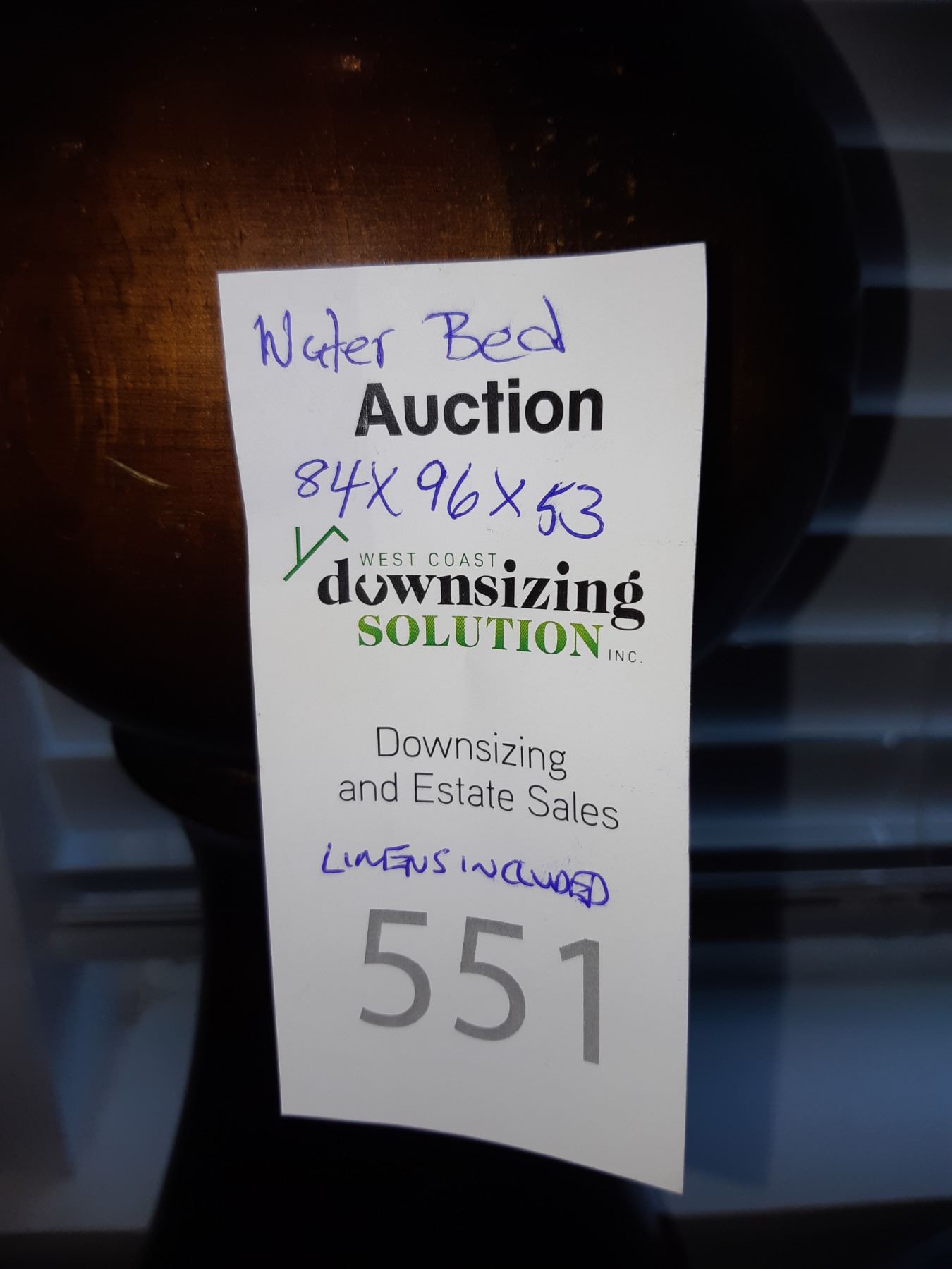 King size water bed, which can easily convert for a box spring and mattress, 84x96x53 includes linens.