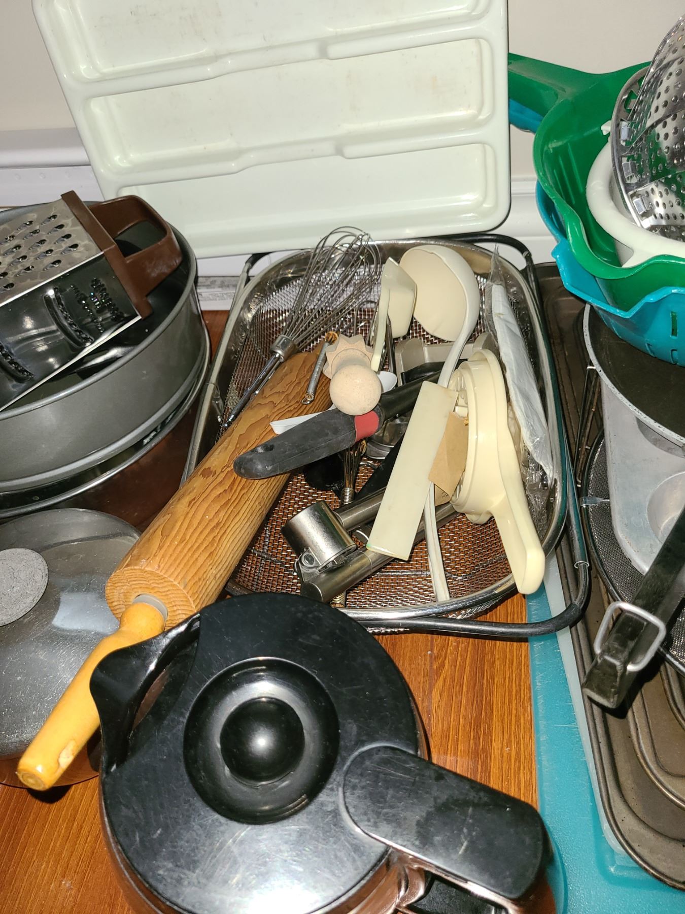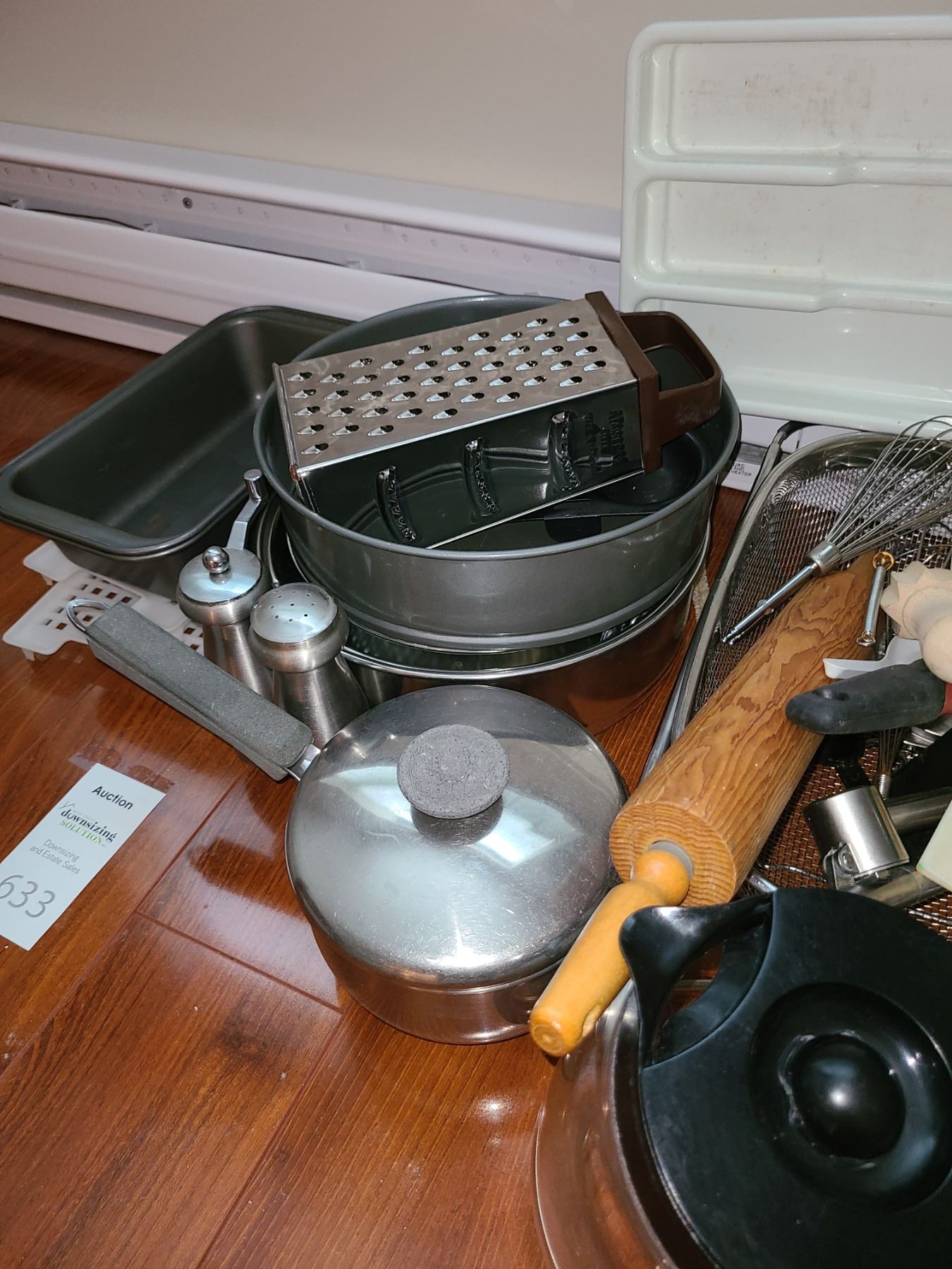 Assortment of kitchen baking. Ware. Bring packing material. Pickup 9 am.
