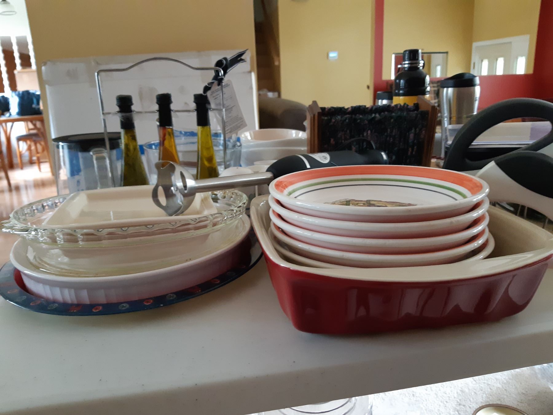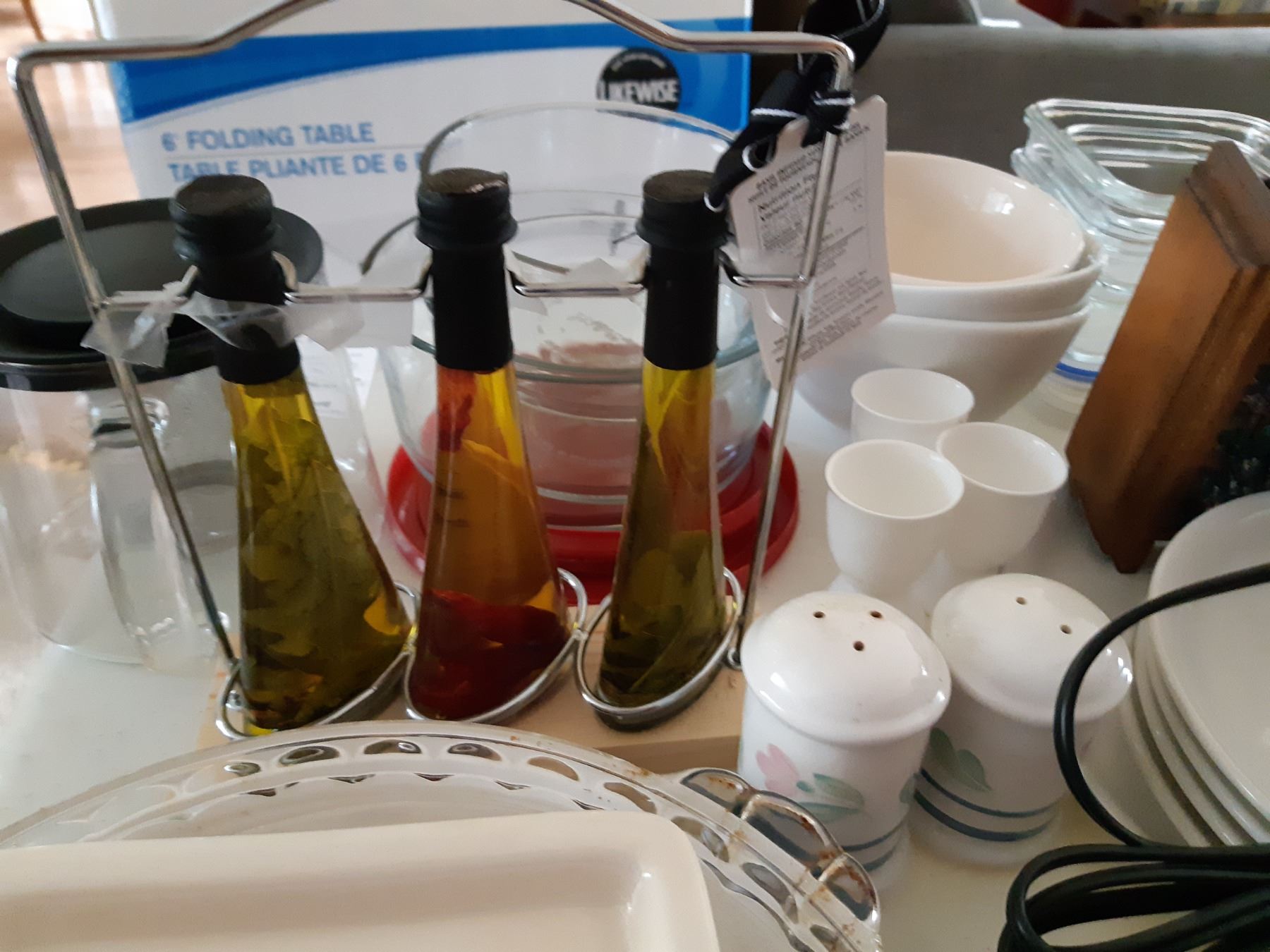 Assortment of pasta bowls, Pyrex, glass food storage and more. Bring packing supplies and pickup at 9 am