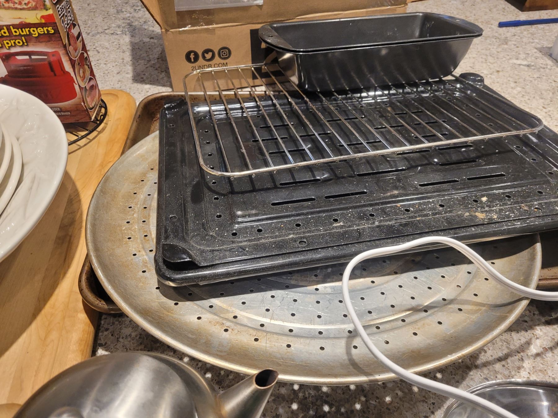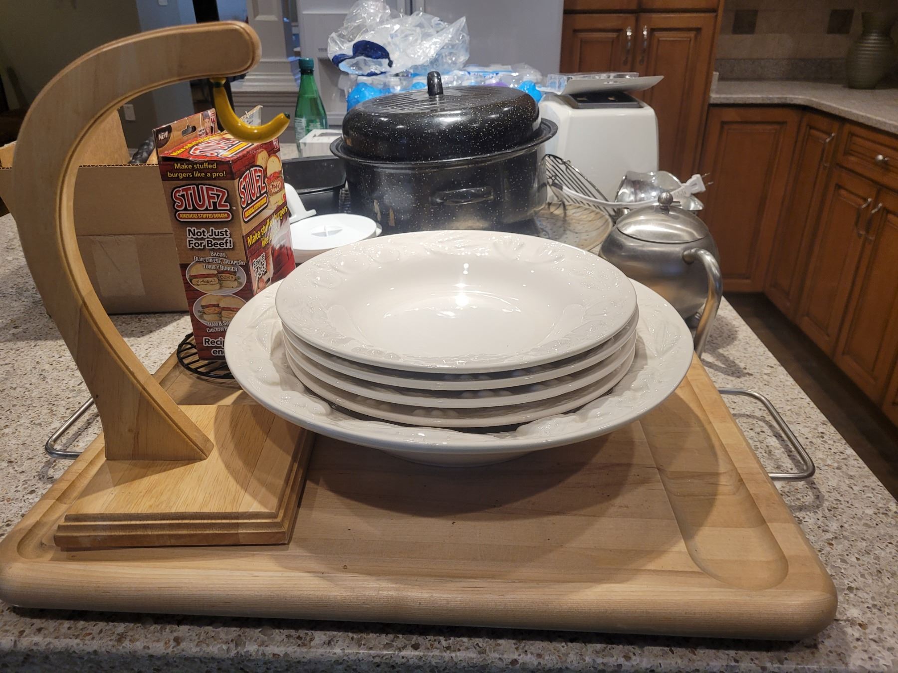 Carving board, roasting pan, metal tea pot, serving bowls, bbq tools, toaster, more. Pick up 9 am