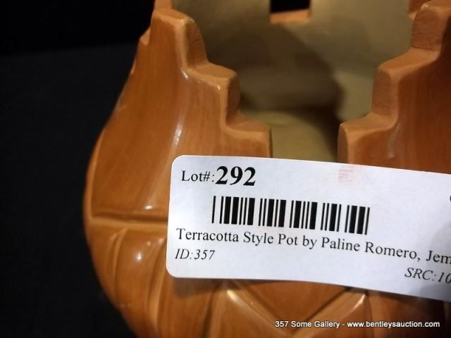Kiva Rimmed Red-Slipped Melon-Shaped Clay Pot by Pauline Romero, Jemez Pueblo, New Mexico 6 1/4"x5 1