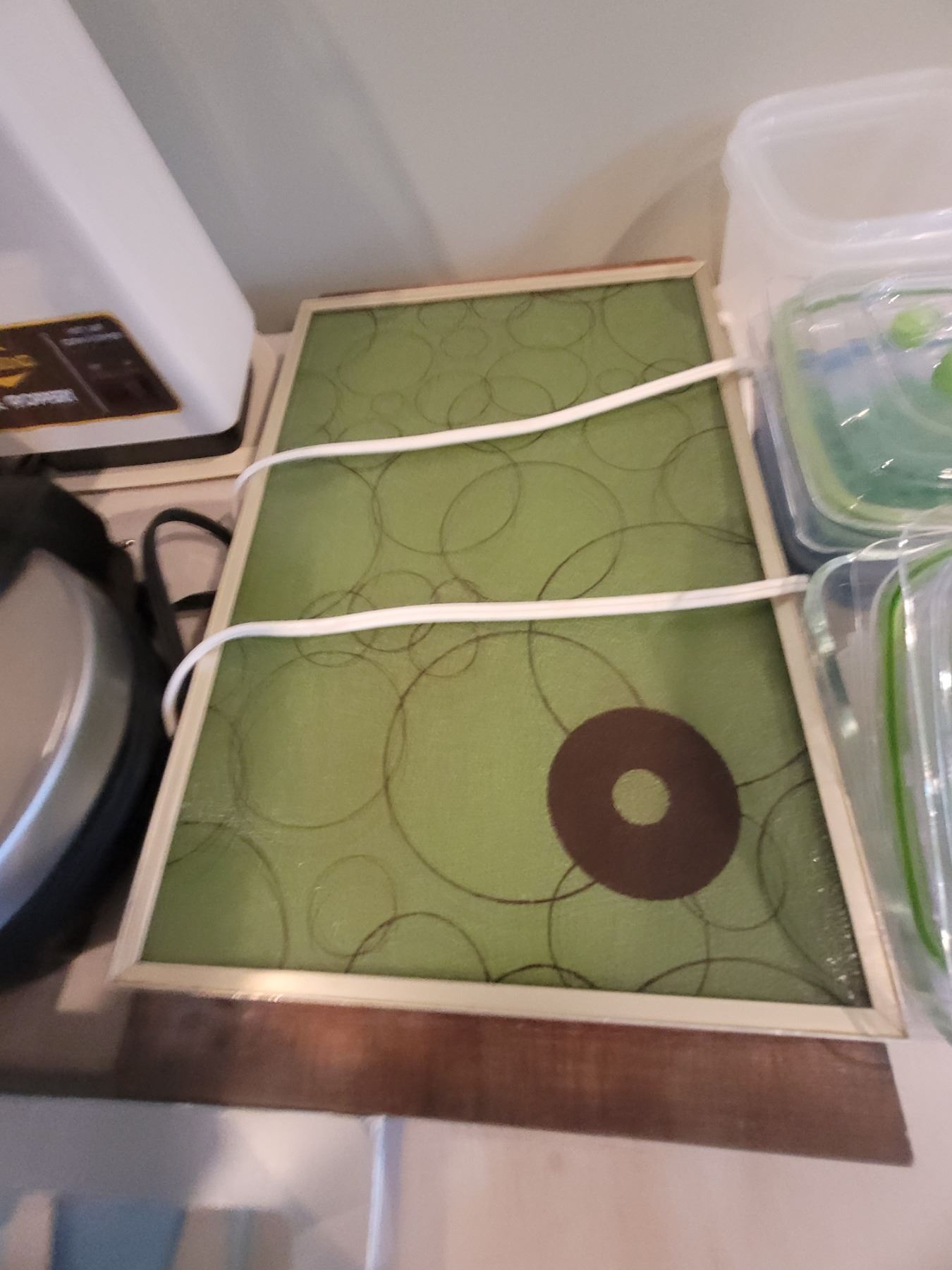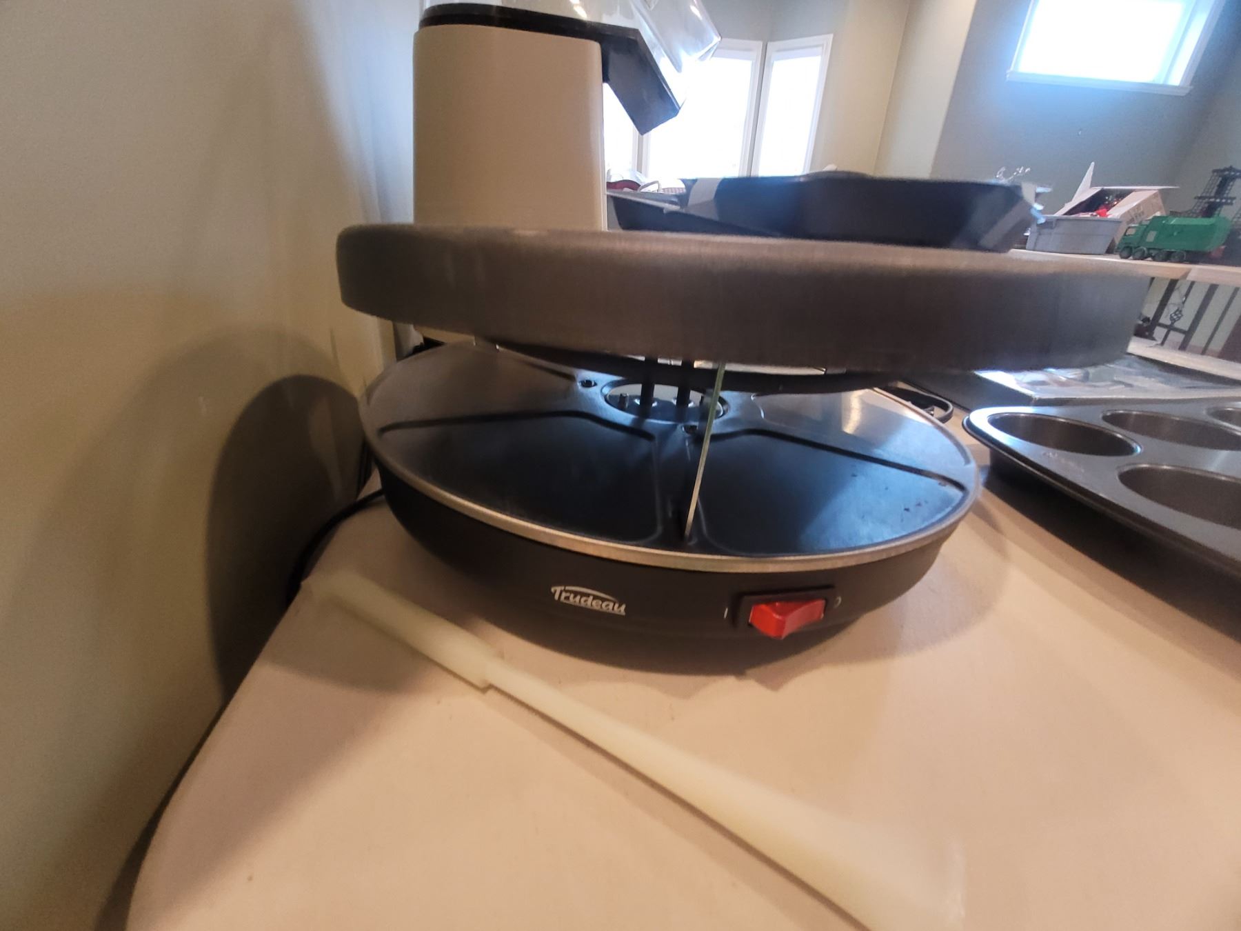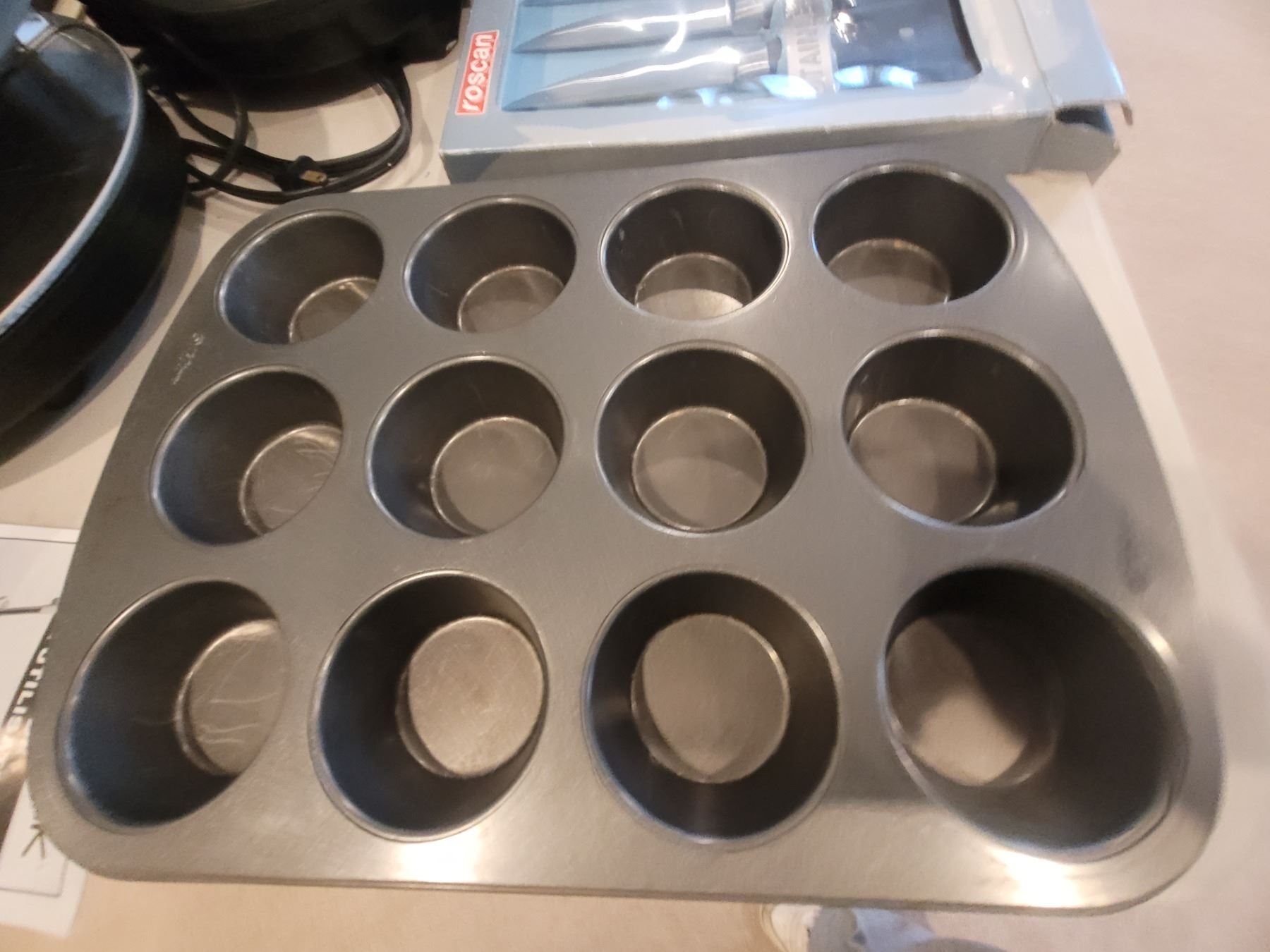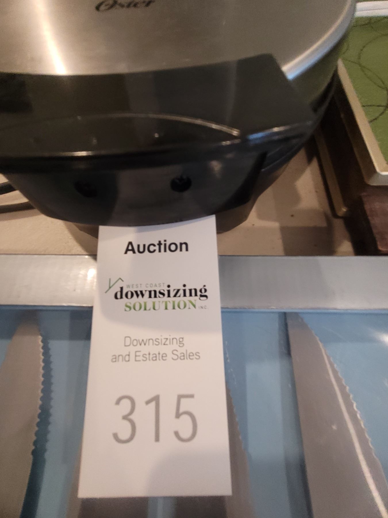 Set of 8 steak knives, magnetic knife strip, vintage electric food warmer, Popcorn maker, Oster waffle maker, more. Pick up 9-10