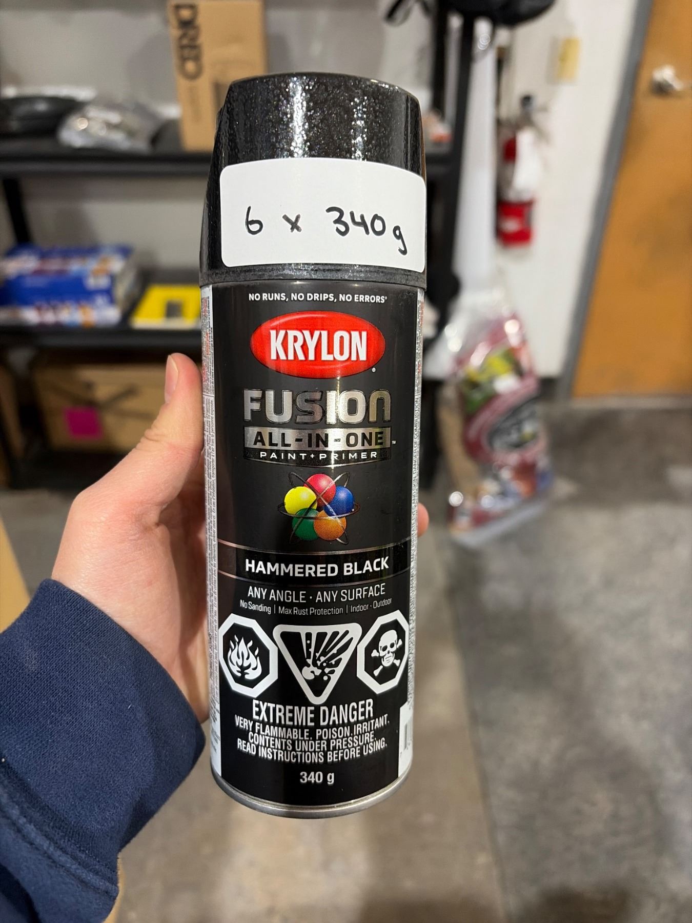 Krylon Fusion All-In-One Spray Paint and Primer, Hammered Black, 340g, Lot of 6
