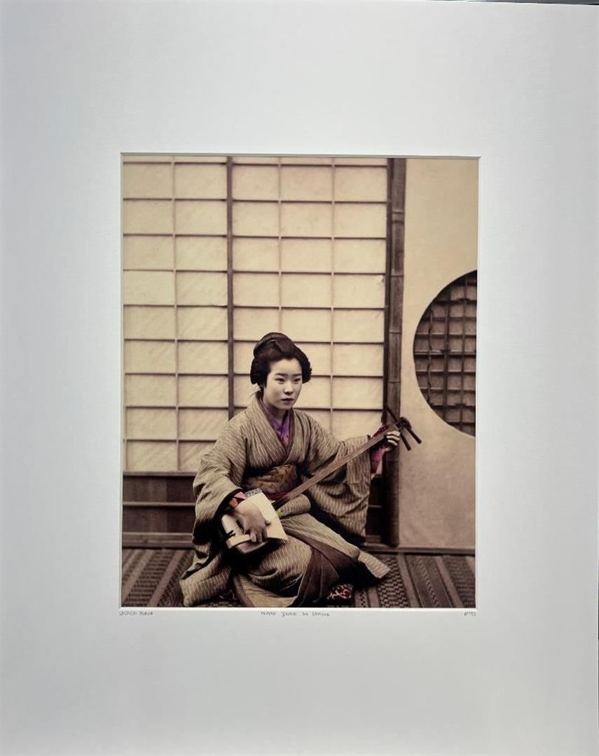 Sashichi Ogawa Japan Femme Jouant Du Samisen Shamisen YellowKorner Certified Photograph. Certificate of Authenticity from YellowKorner affixed to the back. Matted Dimensions 16"x20". Protected with Clear Mylar Sleeve.