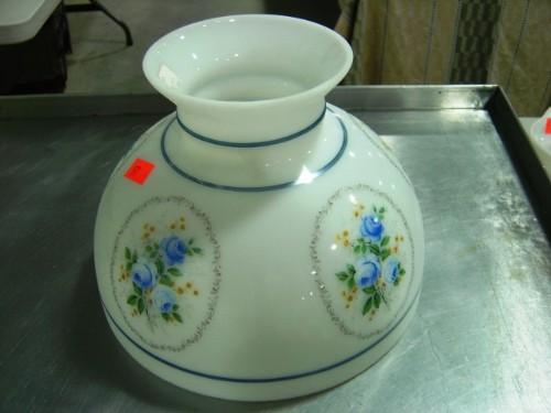 WHITE GLASS PAINTED WITH ROSES 9 3/4 INCH