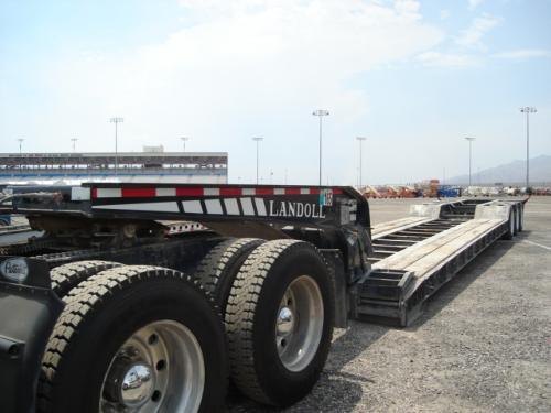 2000 LANDOLL 50 TON TRI-AXLE LOWBOY TRAILER, s/n 1LH327VJ2Y1A11154: SELF CONTAINED, 11HP POWER PACK, HYDRAULIC REMOVABLE NECK, 25ft. LOAD DECK, 8ft 6in WIDE, 13ft. OVER AXLES, AIR RIDE SUSPENSION, OUTRIGGERS