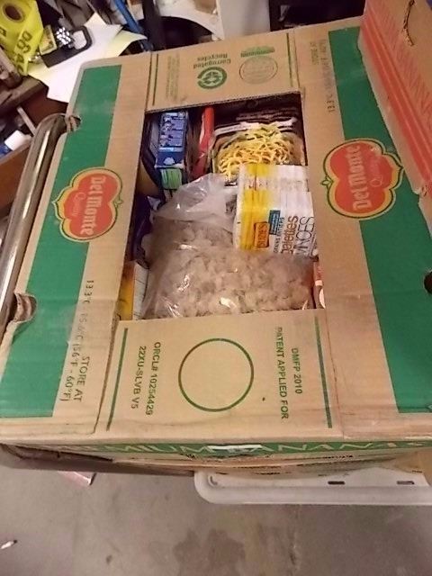 LARGE BANANA BOX OF ASSORTED FOOD ITEMS