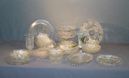 LARGE BOX LOT OF PATTERN GLASS, ETC.