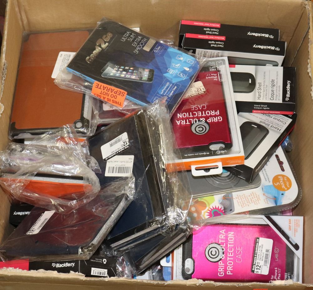 LARGE BOX OF MIXED TYPES & BRANDS CELL PHONE CASES