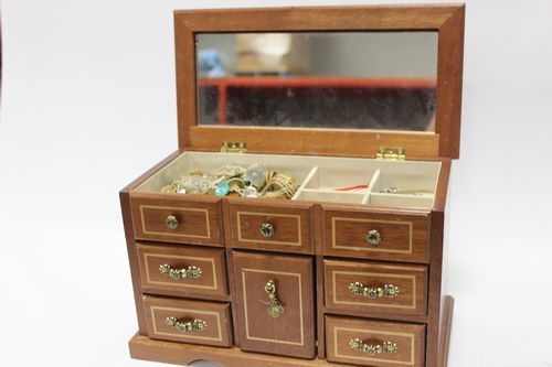 LARGE MUSICAL JEWELRY BOX WITH CONTENTS