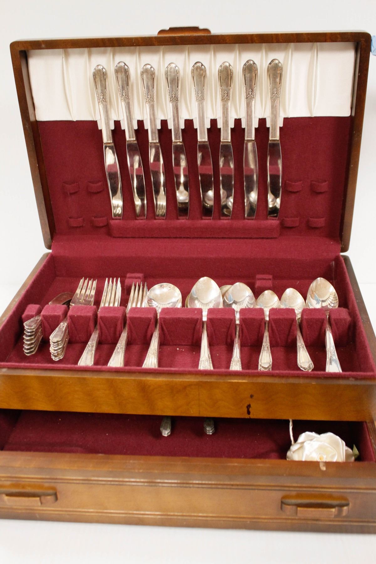 LARGE ROGERS SILVER WARE SET IN WOODEN CASE