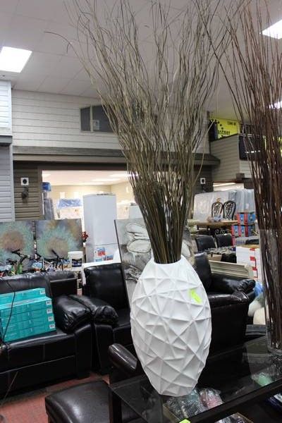 LARGE WHITE SHOWHOME VASE W TWIG ACCENTS