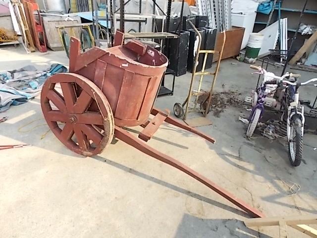 LARGE WOOD GARDEN CHARIOT ORNAMENT