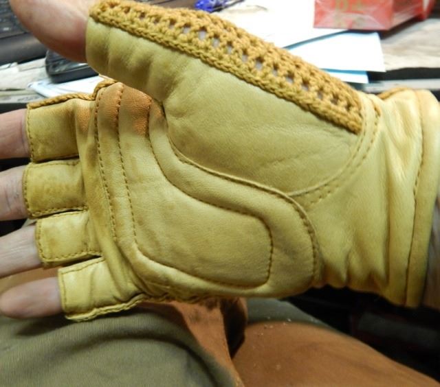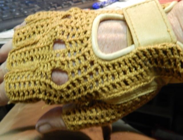 LEATHER & KNITTED FINGERLESS GLOVES - LARGE - 1 PR GOLD