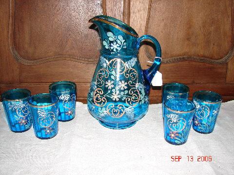 BLUE, HAND PAINTED, SLIGHT WEAR ON GOLD TRIM