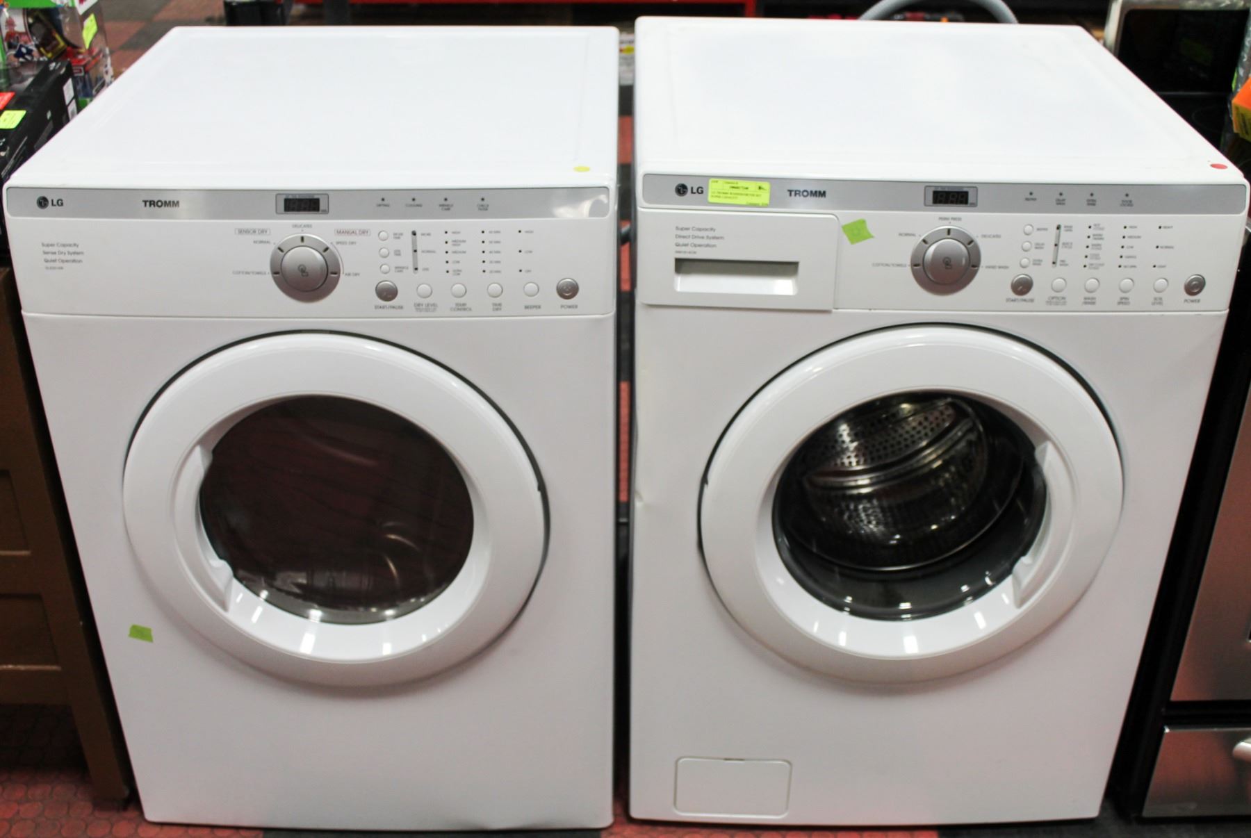 7 DAY WARRANTY FROM DATE OF PURCHASE. DRYER SETUP FOR DOWN EXHAUST OR REAR. STACKABLE IS POSSIBLE WITH THESE UNITS.