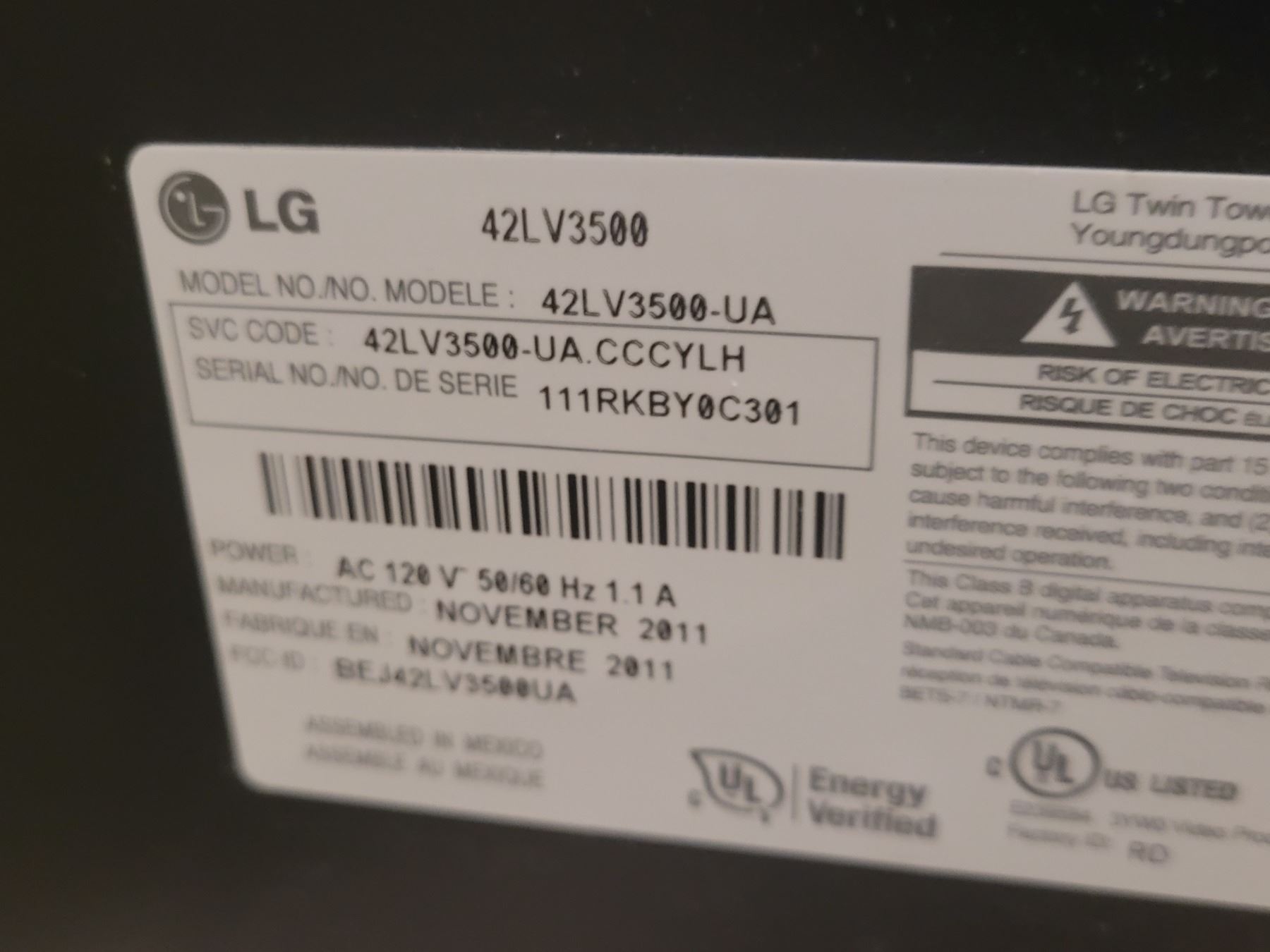 42" LG TV. Model 42Lv3500. Includes remote. Untested. Pick up 9-10