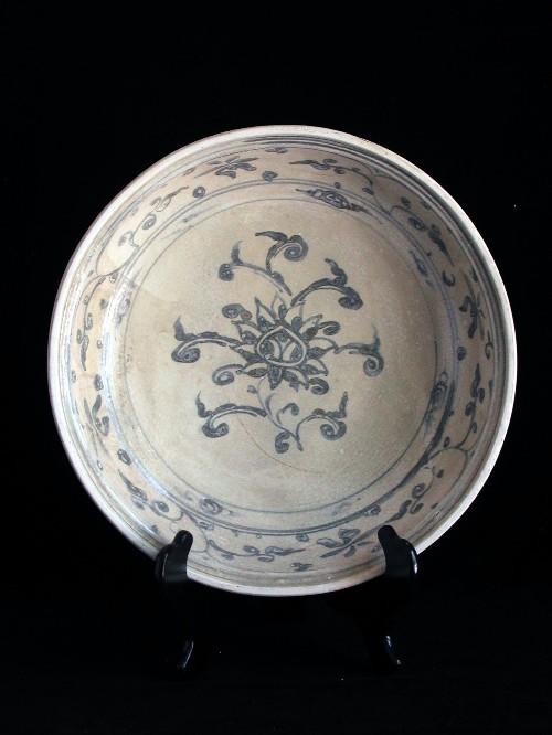 LG UNDERGLAZE BLUE & WHITE DISH, FLORAL