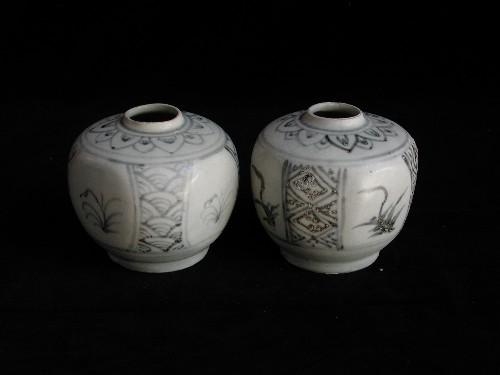 LG UNDERGLAZED BLUE & WHITE JARLETS, FLORAL