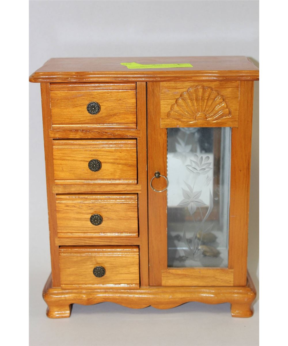 LIGHT BROWN JEWELLERY BOX W/ CONTENTS