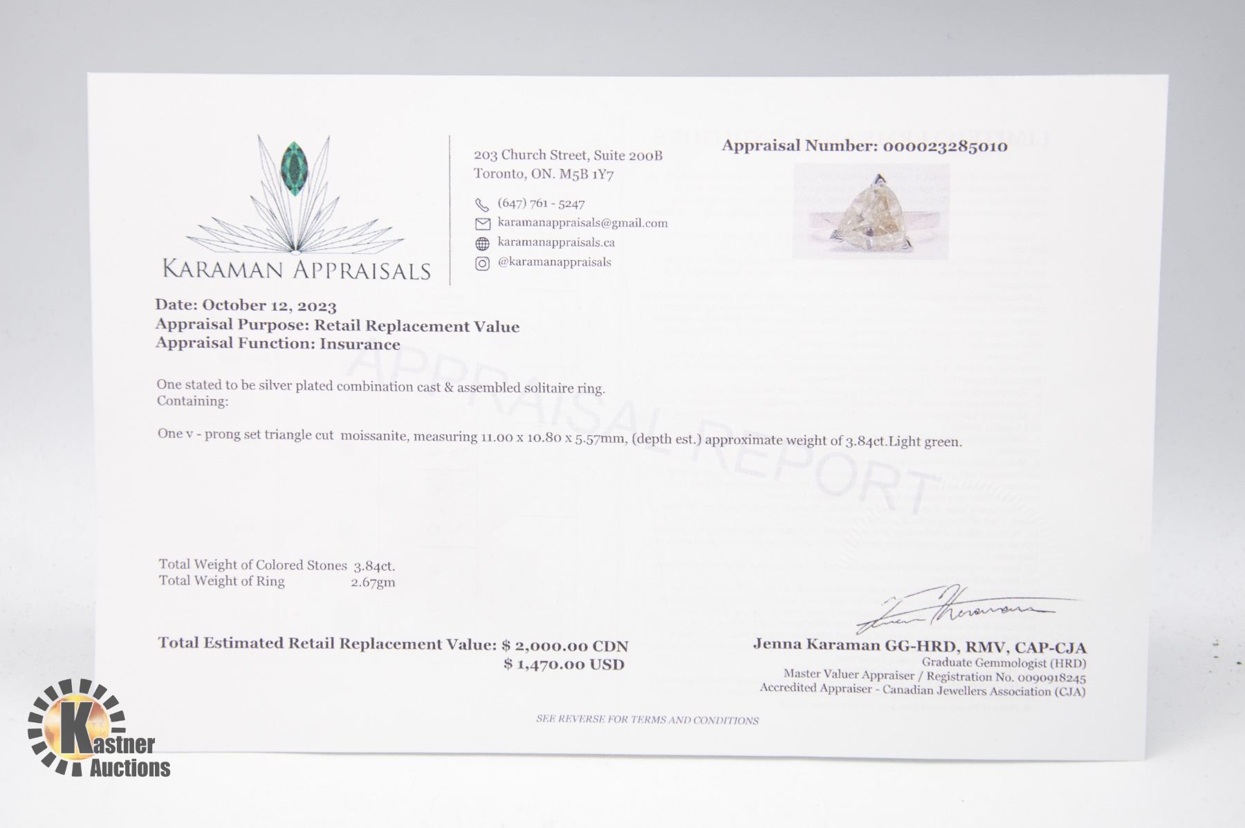 LIGHT GREEN TRI CUT MOISSANITE SILVER PLATED