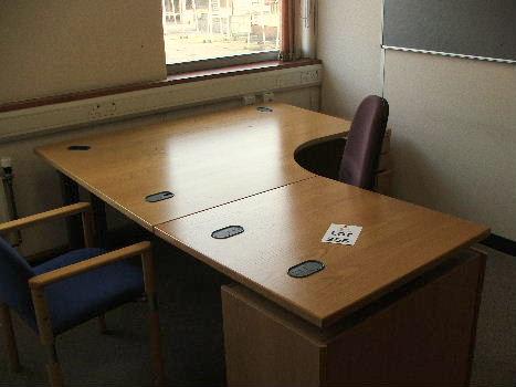 LIGHT OAK DESK WITH EXTENSION, 1 X METAL CABINET, 1 FILLING CUPBOARD, 1 X LIGHT OAK 3 DRAWER PEDESTA