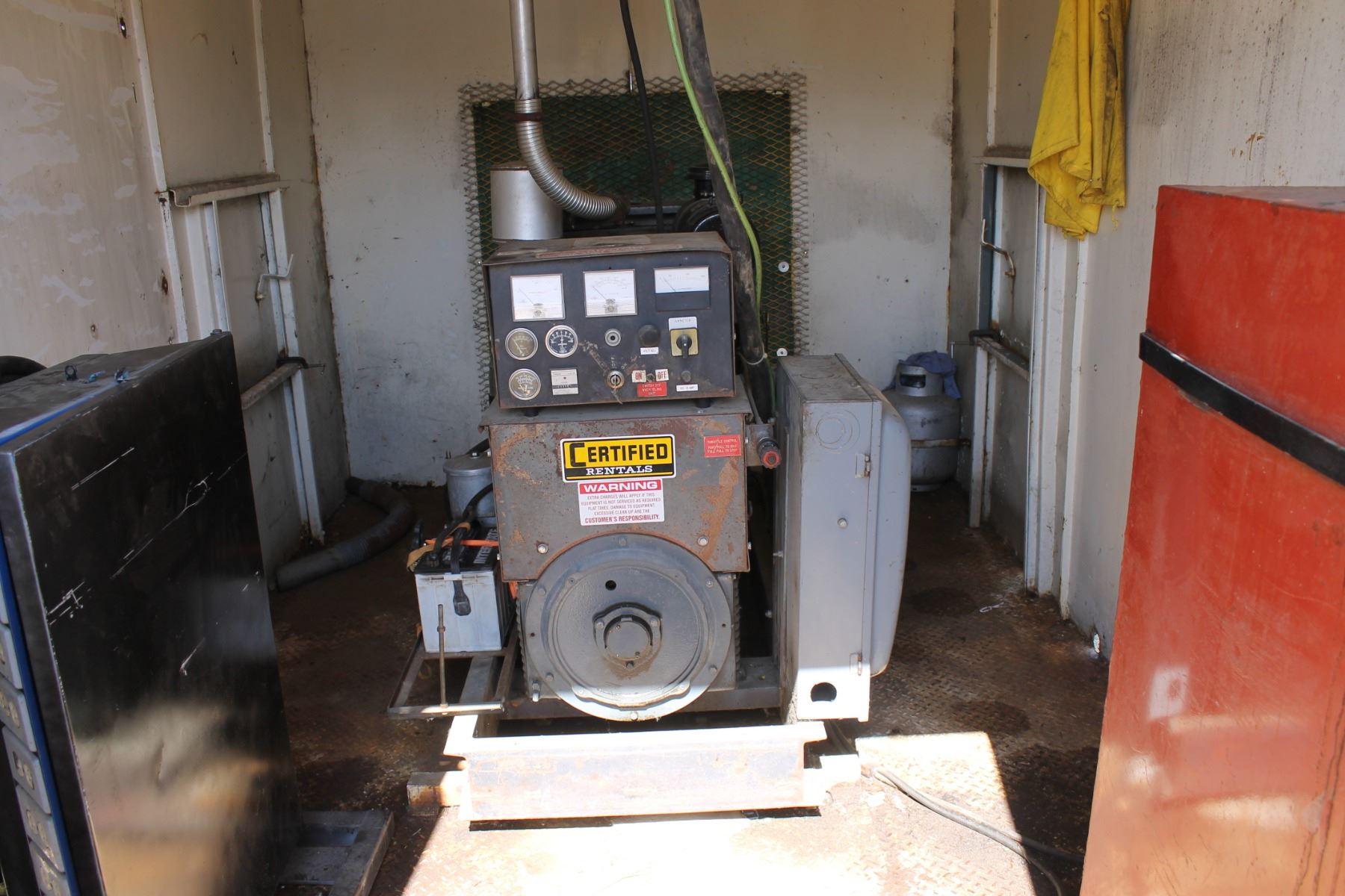 35 KW; C/W REMOTE POWER DISTRIBUTION BOARD; 50' CABLE; ENCLOSED IN METAL DOG HOUSE; 4 CYLINDER ISUZU DIESEL; 12,900 HOURS; SN #