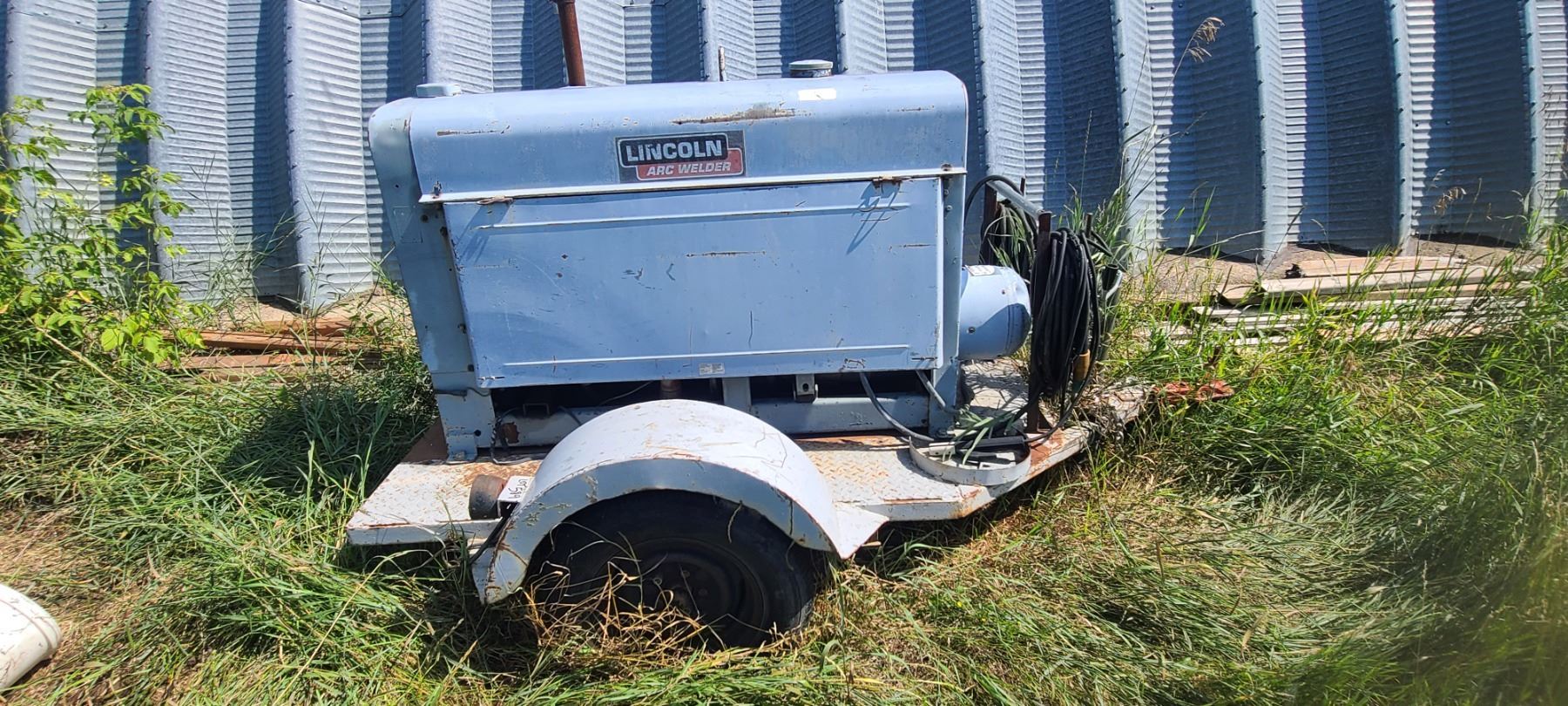 LINCOLN ARC WELDER 350-CDN - C/W CABLES - UNIT STARTS AND RUNS - GENERATOR PORTION WORKS, TIRES ARE FLAT , NEEDS NEW BATTERY, WELDER OUTPUT NOT TESTED
