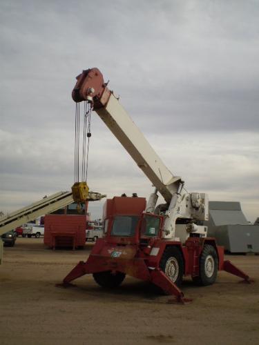LINK BELT YC 48 HYDRAULIC ROUGH TERRAIN CRANE, s/n 23G4-776B: DETROIT 4-53 DIESEL ENGINE, 28ft.-64ft. 3 SECTION TELESCOPIC BOOM, JOHNSON 20 TON 3 SHEAVE HOOK BLOCK, CAB, 4 HYDRAULIC OUTRIGGERS, 16:00 X 25 TIRES