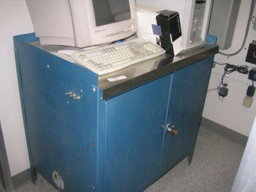 LOCKING BLUE METAL STORAGE CABINET W/ STAINLESS TOP