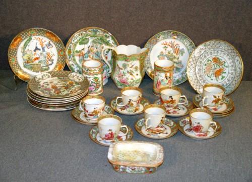 LOT 32 PCS ROSE MEDALLION INCL PITCHER, BRUSH POTS