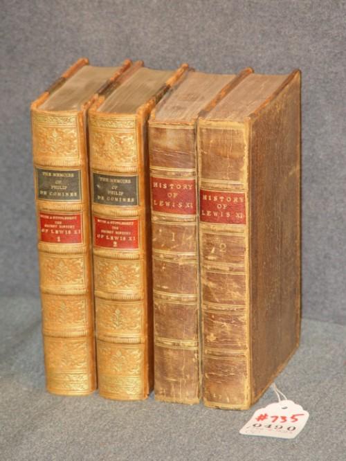 LOT 4 BOOKS ON LEWIS XI INCL 1746 HISTORY BY DUCLOS AND 1823 MEMOIRS OF PHILLIP DE COMINES