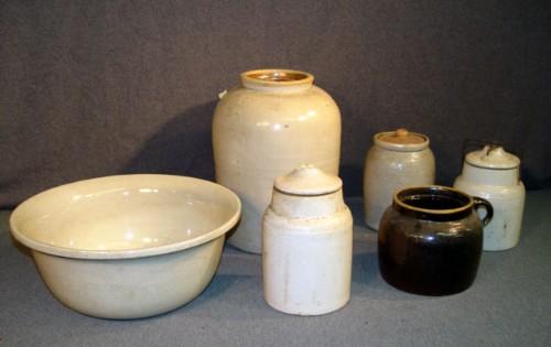LOT 6 PCS STONEWARE INCL LARGE MIXING BOWL