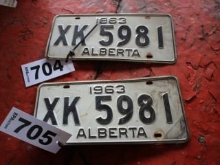 (LOT 704/705) ALBERTA LICENCE PLATE SET DATED 1963 (PER PLATE TIMES 2)
