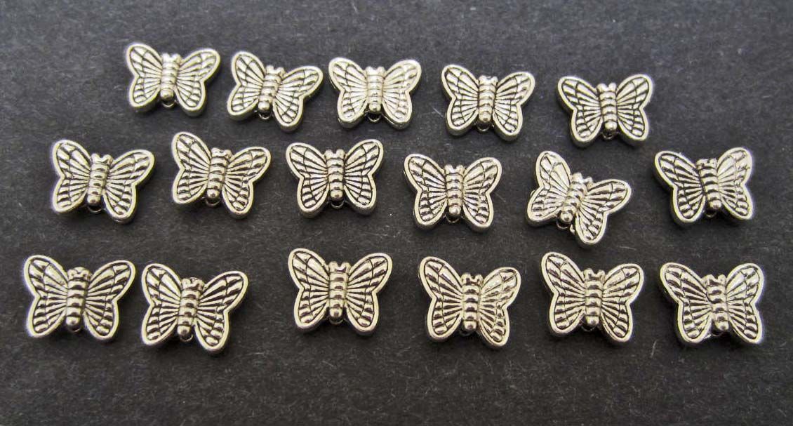 LOT OF 17 TIBETAN SILVER BUTTERFLY CHARM BEAD PENDANTS