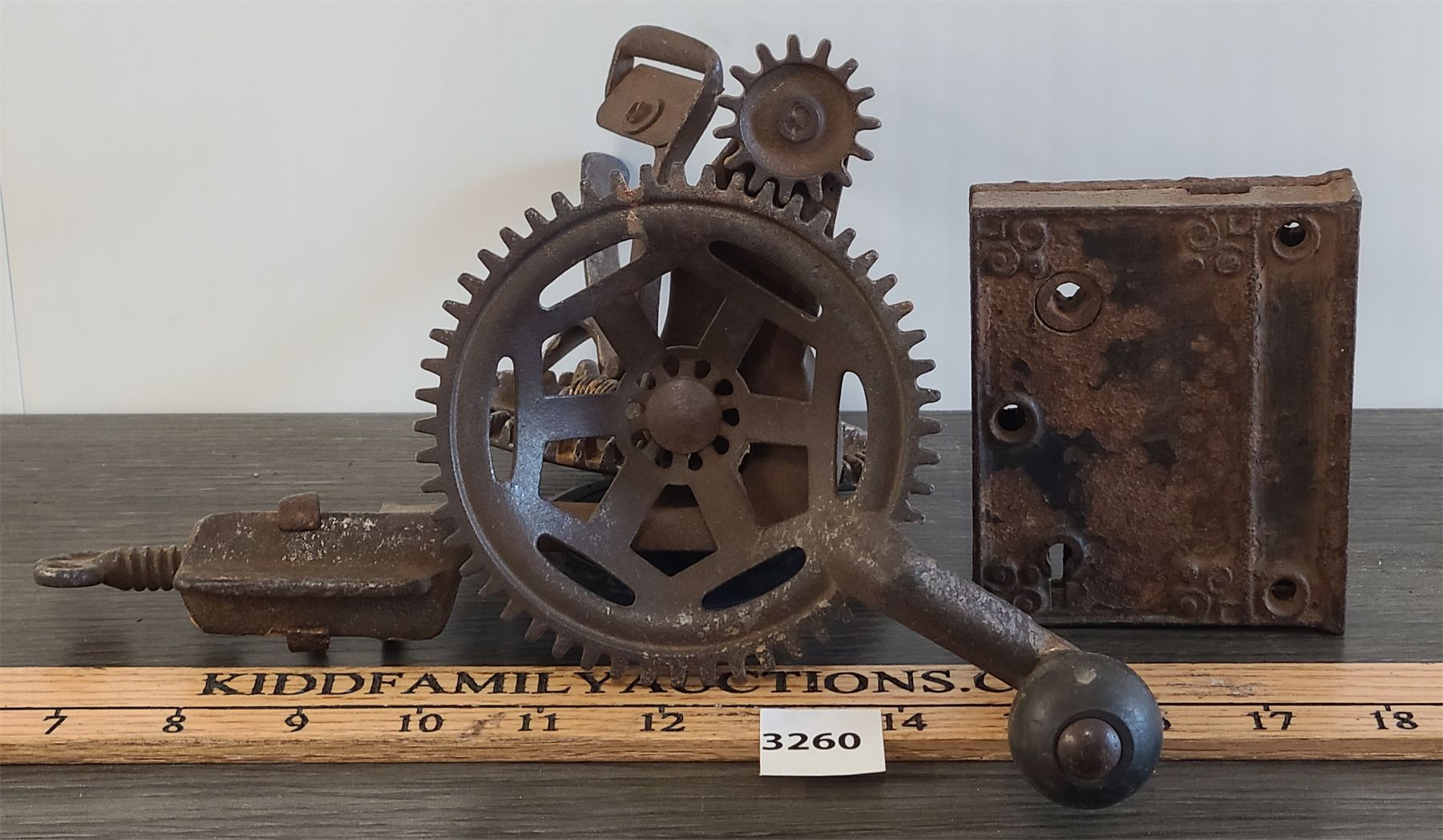 LOT OF 2 - IRON APPLE PEELER & DOOR HARDWARE