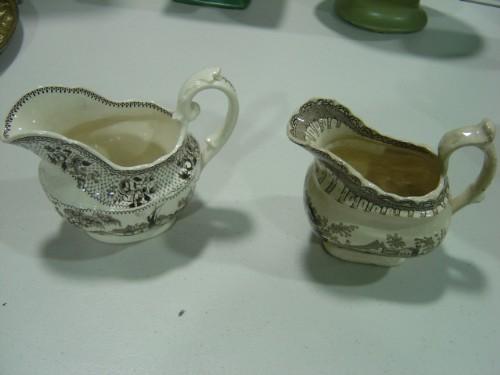 LOT OF 2 PAINTED CREAMERS; 1-HAS CRACK & CHIP