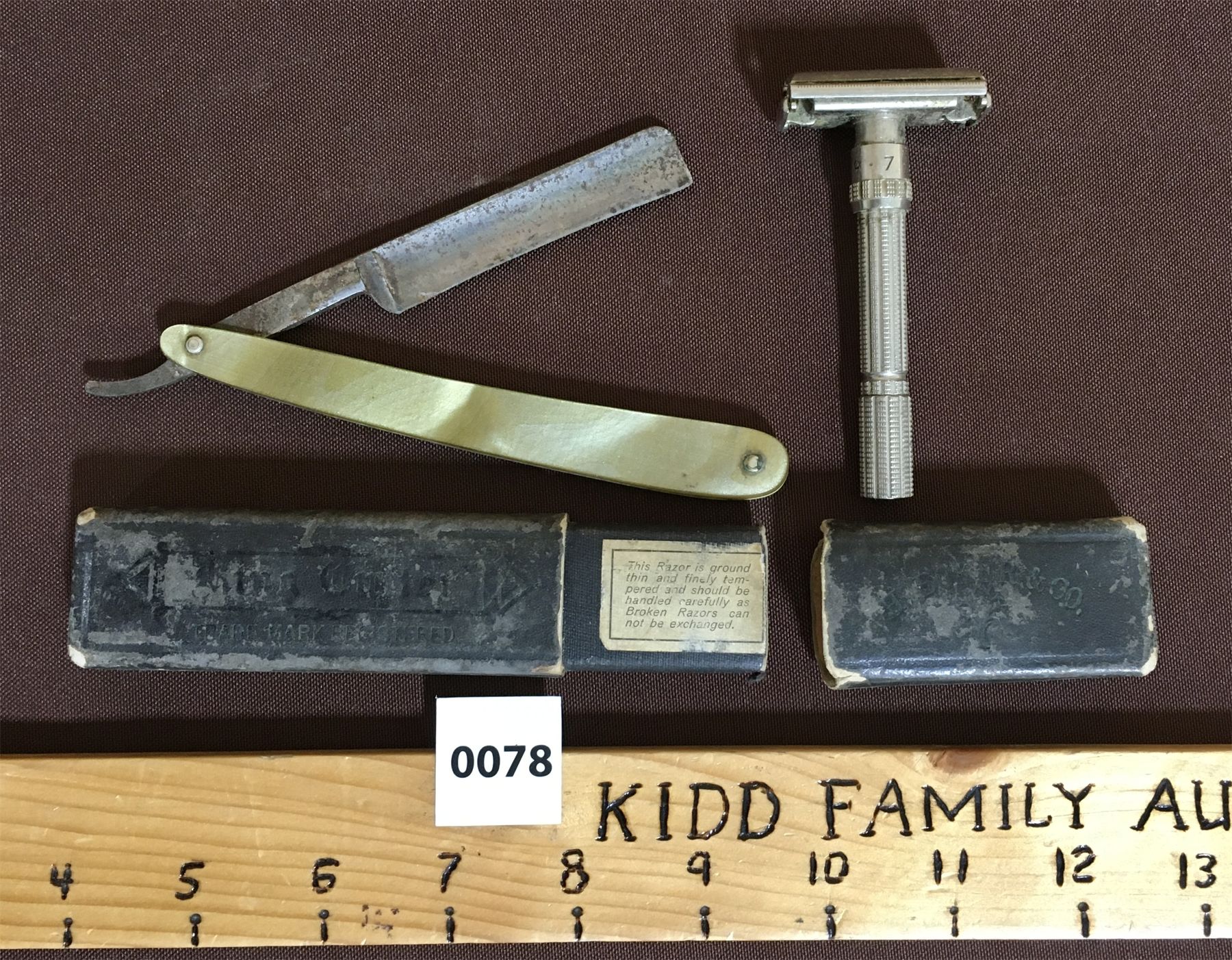 KIDD FAMILY AUCTIONS does not guarantee or make warranties on any lot sold. Ratings in the catalog are our opinion. We acknowledge that errors may occur although we endeavor to give you accurate information in what is written. We strongly recommend you personally view any item you bid on. KIDD FAMILY AUCTIONS cannot be held liable.