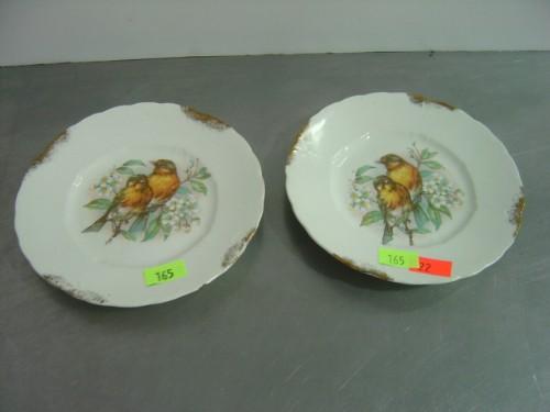 LOT OF 2 SAUCERS PAINTED WITH BIRDS (1 WITH CHIP)