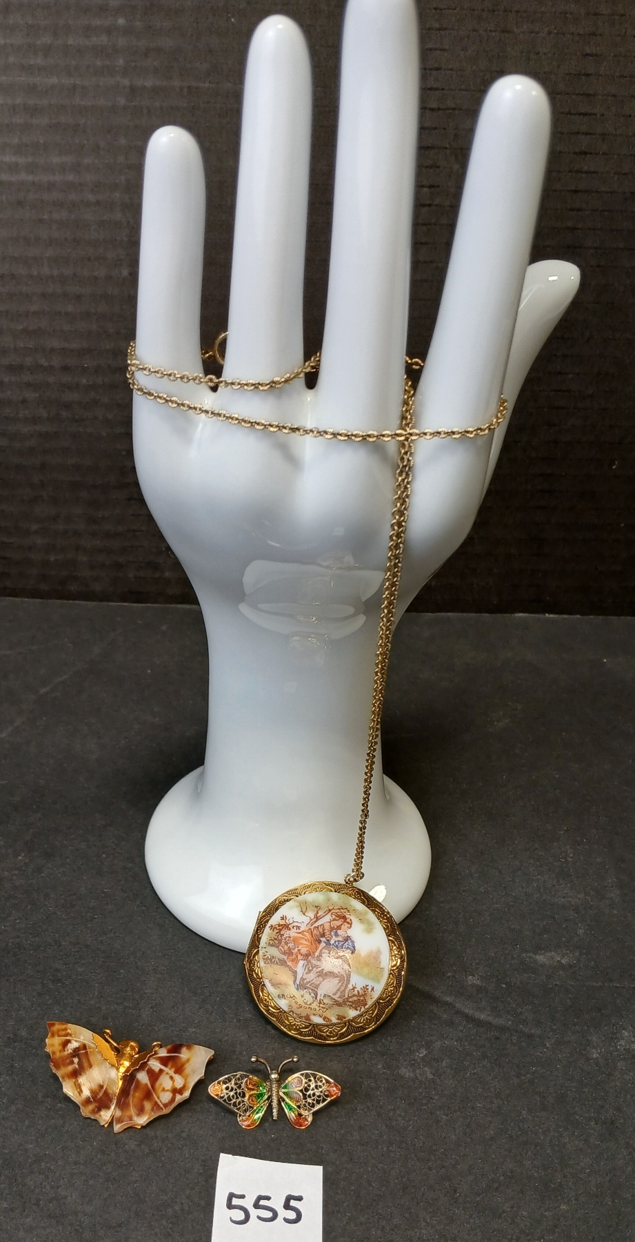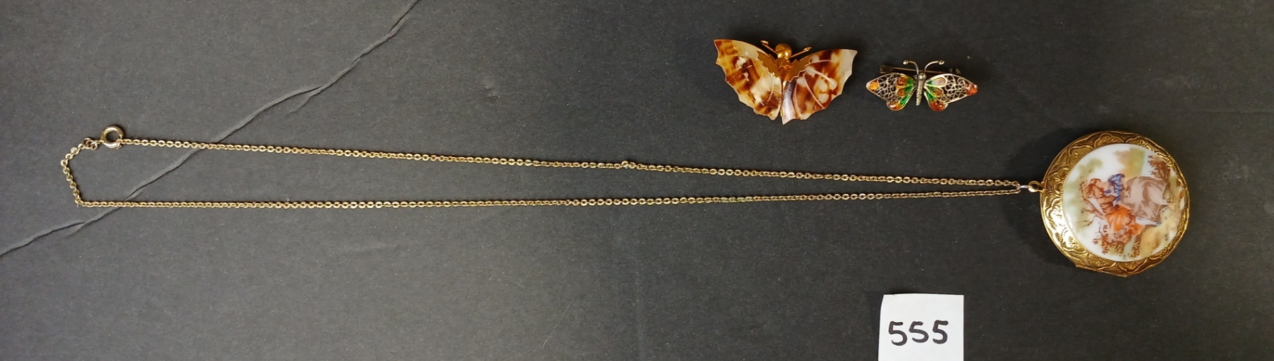NOTE: LARGEST IS 1 X 1.5IN BROOCH - 24IN CHAIN