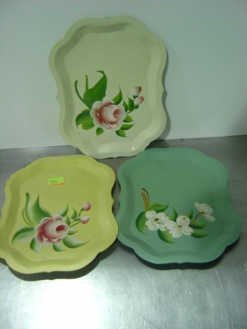 LOT OF 3 METAL PAINTED SNACK TRAYS