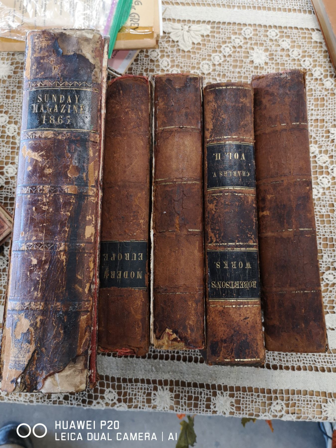 LOT OF 5 ANTIQUE 1865 BOOKS.