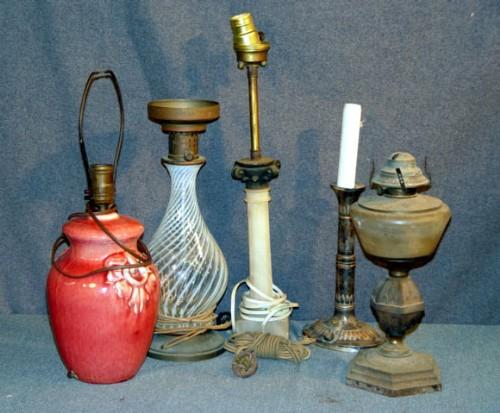 LOT OF 5 LAMPS INCL ALABASTER AND SHEFFIELD PLATE