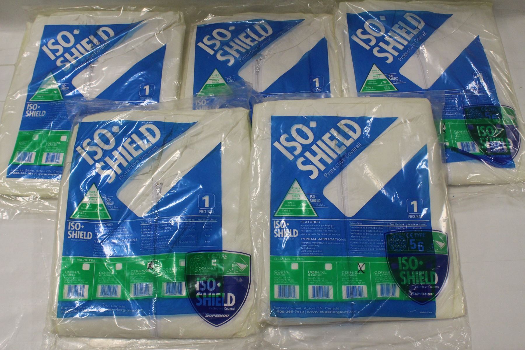 LOT OF 5 PAIRS OF SUPERIOR COVERALLS W/ HOOD.