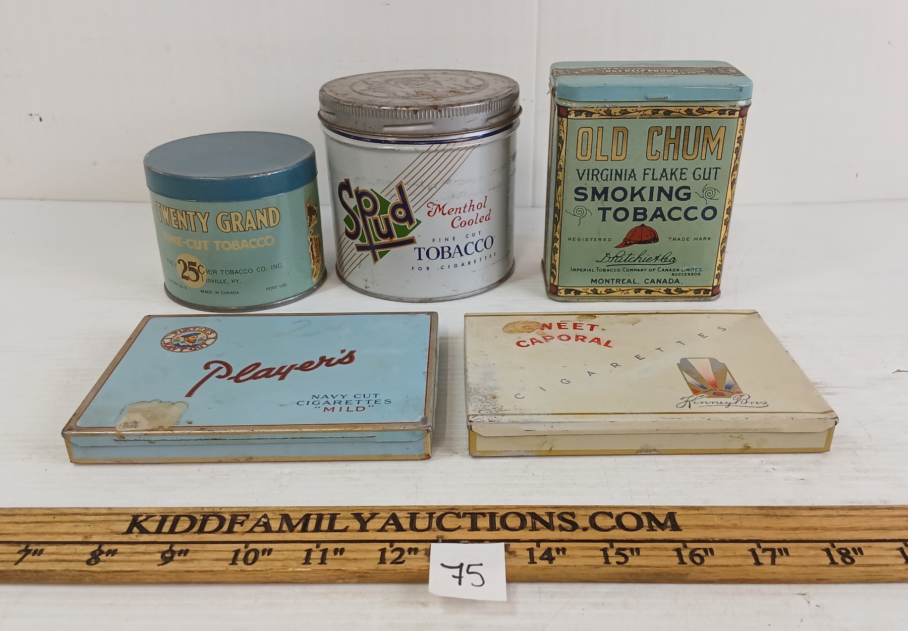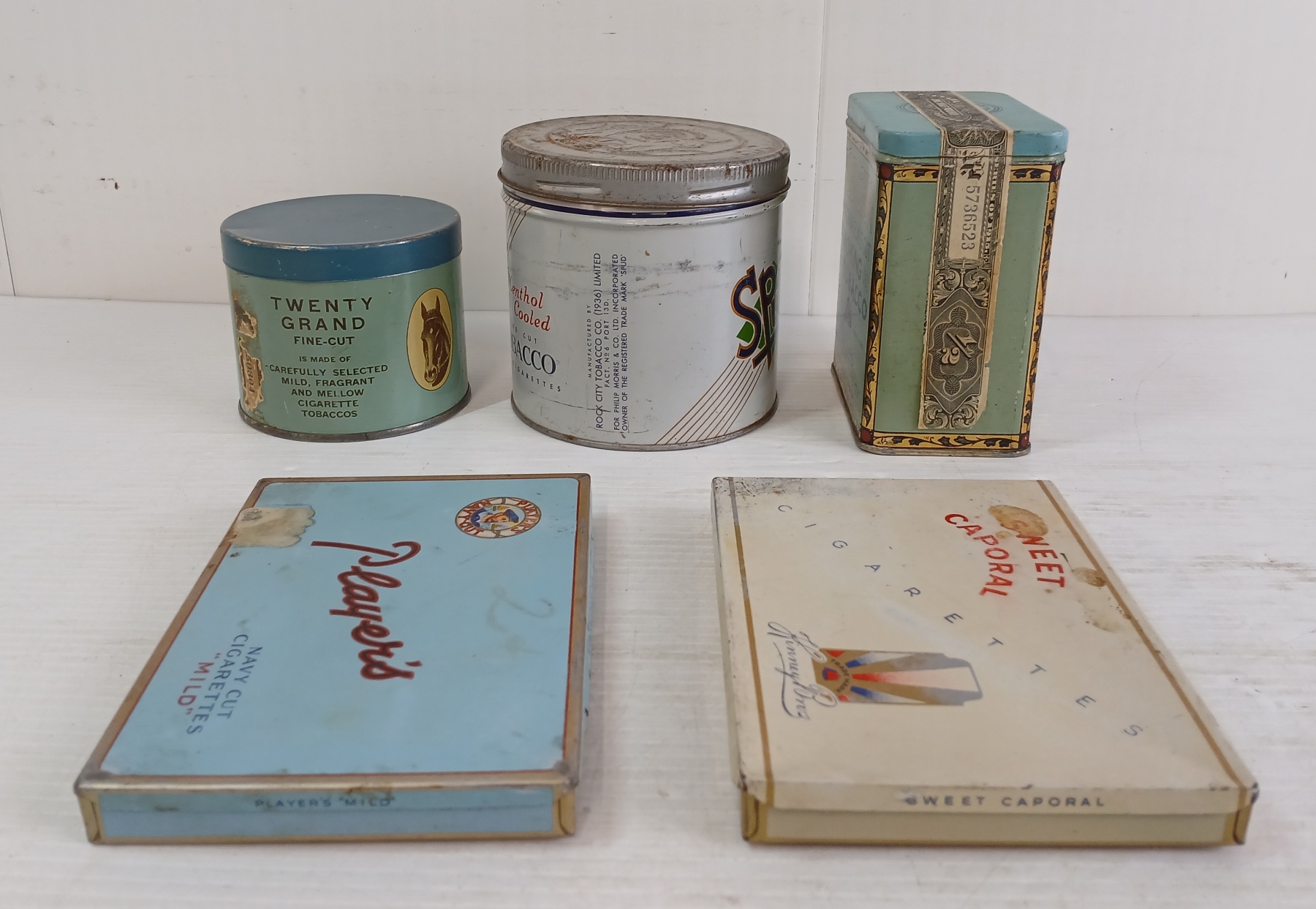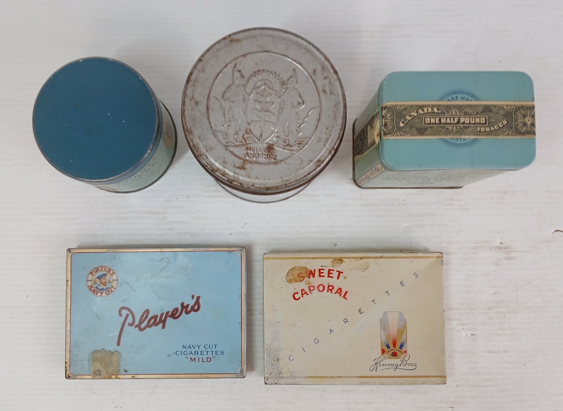 LOT OF 5 - TOBACCO TINS - INCL PLAYER'S, SWEET CAPORAL, ETC.